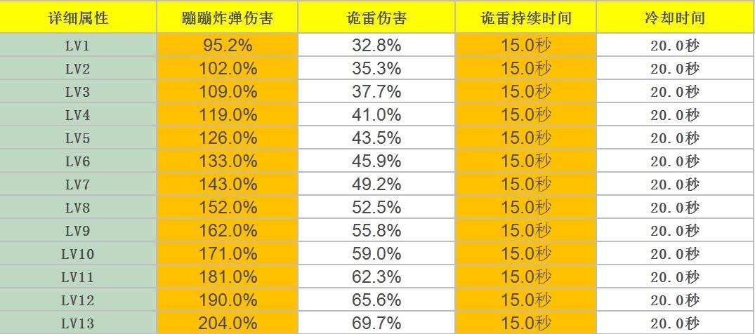蹦蹦炸弹各等级数据一览:
