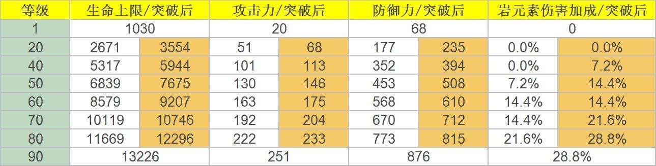 二、《原神》阿贝多角色属性数据一览