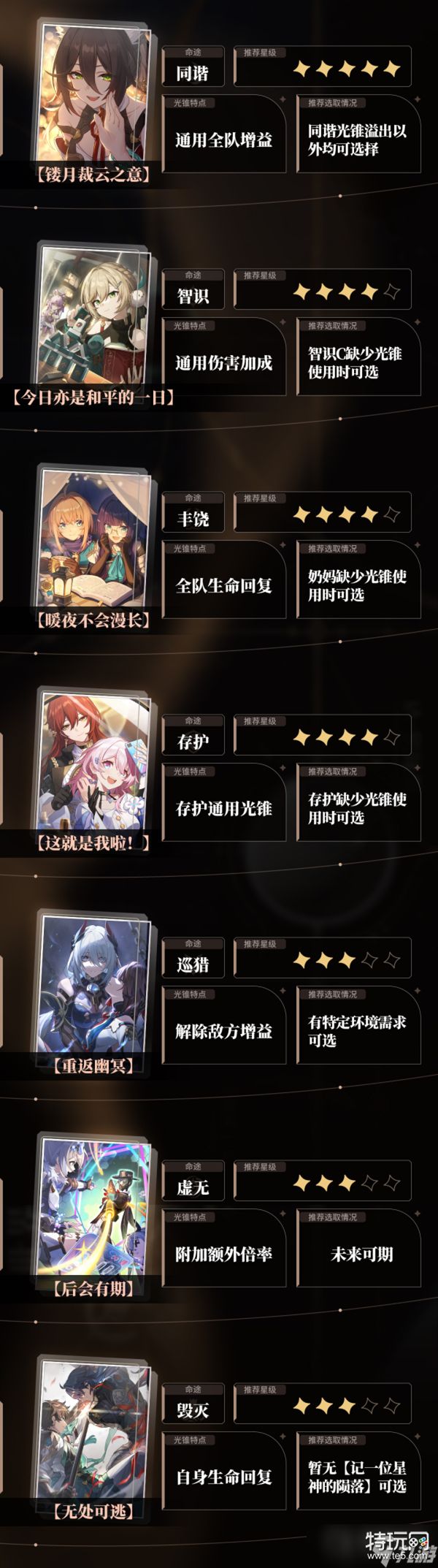 如果不是同谐光锥溢出的话还是非常推荐选择【镂月裁云之意】嗷,其他的就要看自己库存情况来选啦,如果相关命途有可肝光锥的话可以暂缓考虑