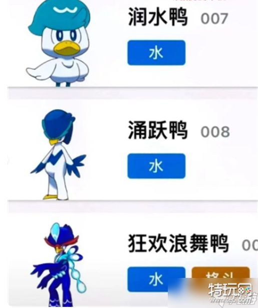 润水鸭进化形态:润水鸭--踊跃鸭(16级进化)——狂欢浪舞鸭(36级进化)——专属技能:流水旋舞。梦特——自信过剩。