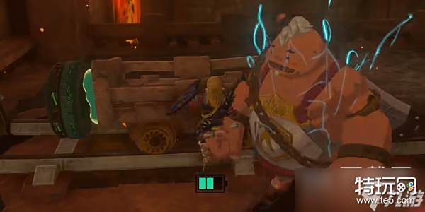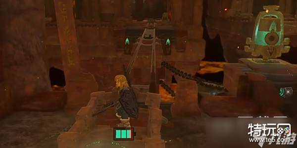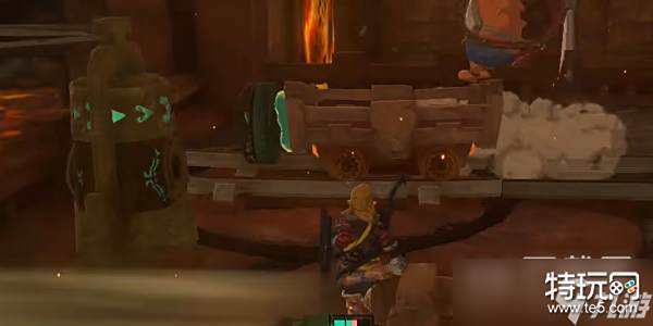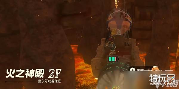 1、首先我们需要完成塞尔达王国之泪火之神殿1楼的探索(点击查看),打开1楼的挂锁并乘坐轨道车前往2层。