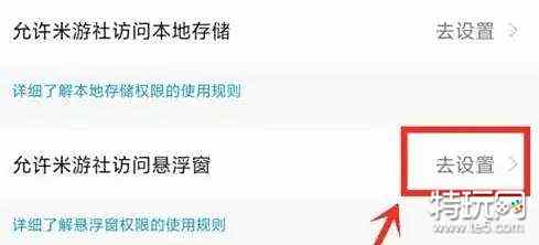 4、点击”允许米游社访问悬浮窗“右侧”去设置“。