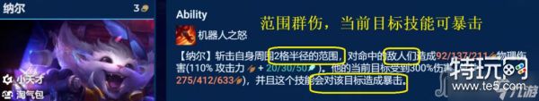 纳尔是小天才羁绊,5小天才羁绊可直接获得2件装备,且装备比常规装备更强,在中期阵容过渡有装备优势,锁血能量较强。