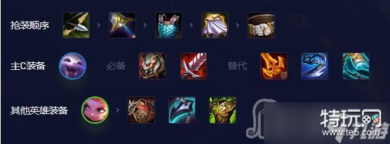 装备上优先合成泰坦与饮血,坦度装备狂徒与龙牙优先级较高。