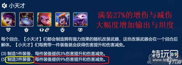 5小天才羁绊,纳尔3件满装备可多加27%增伤与减伤,这样就大幅度提升了纳尔的输出效率,也会让纳尔变的更肉。