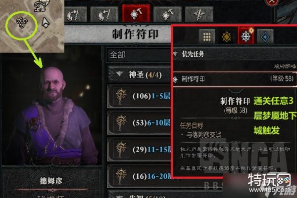 3、当你完成一个最低3层的梦魇地下城后,即可战网解锁符印的分解与合成功能,低级的符印可以在幻术师处拆成符印粉末后合成高级符印。世界任务宝箱也会奖励符印粉末。
