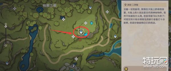 1、玩家首先传送到须弥二净甸的传送锚点处,传送锚点具体位置可参考下图。