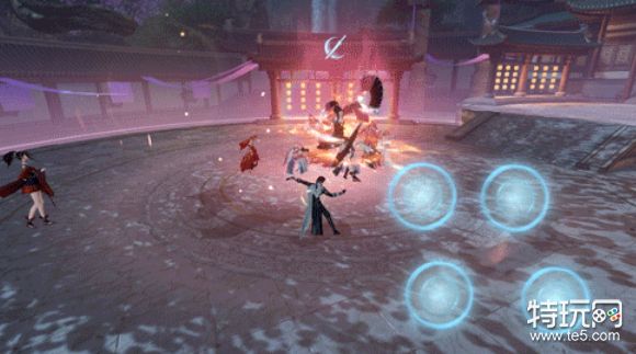 红袖向一个位置跳去,随后释放一段踢击和回旋踢,对周围玩家造成大量伤害,需要注意站位,及时远离。