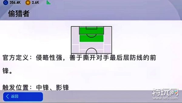 1、实况足球手游偷猎者是活跃在对方越位线的球员,触发位置是中锋和影锋。