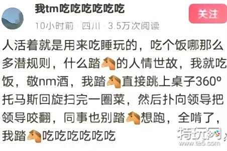 人活着就是用来吃睡玩的,吃个饭哪那么多潜规则,什么踏马的人情世故,我就吃饭,敬nm酒,我踏马直接跳上桌子360°托马斯回旋扫完一圈菜,然后扑向领导把领导咬翻,同事也别踏马参想跑,全啃了,我踏马吃吃吃吃吃吃