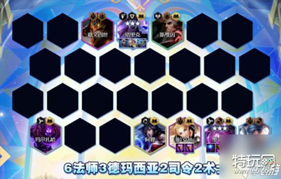 法师纹章给娑娜+嘉文四世,直接开出8法师,阵容不需要追3星维克兹,只要全员2星伤害完全溢出。