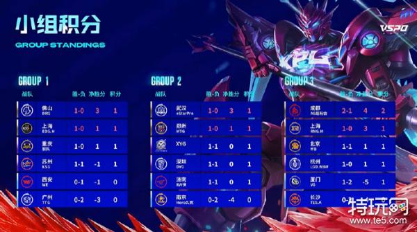 武汉eStarPro 1胜0负,净胜分3分,积1分,排名二组第一;