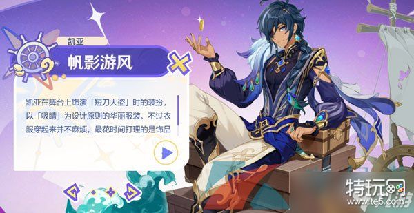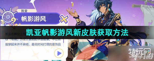 原神将会在3.8版本的更新中上线两款全新的皮肤,一款是可莉的,还有一款是凯亚的帆影游风,两款都是永久上架到商城内的皮肤,且凯亚这款皮肤除了可以购买之外,还可以参与获得获取,大家对皮肤的获取方法还不是太清楚,那么接下来特玩小编就给大家整理了关于原神3.8凯亚帆影游风新皮肤上线时间介绍全部内容,感兴趣的小伙伴继续往下看看吧。