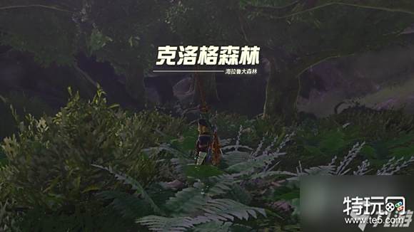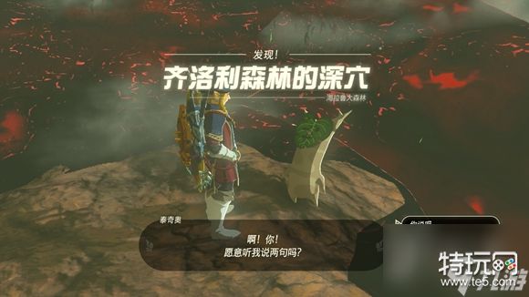 3、途中会看到一个呀哈哈站在齐洛利森林的深穴那里,我们跟它对话,然后跳进去深穴。