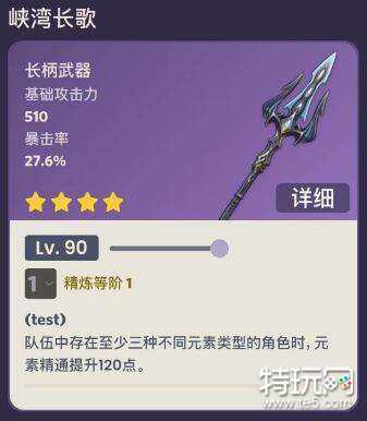 原神峡湾长歌90级属性怎么样?在原神即将上线4.0枫丹版本中,将会上线非常多的全新武器,其中纪行武器全都是暴击率的,峡湾长歌则是其中的长柄武器,也就是常说的枪,下面就一起来看看90级的属性面板吧。
