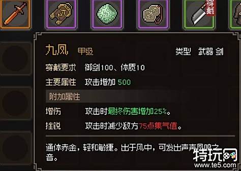 大侠立志传九凤主要属性为攻击增加500。附加属性有增伤,攻击时减少敌方75点集气值,穿戴要求为御剑100、敏捷10,战斗中可以增加最终伤害,快速制敌,也可以减少敌方集气值。