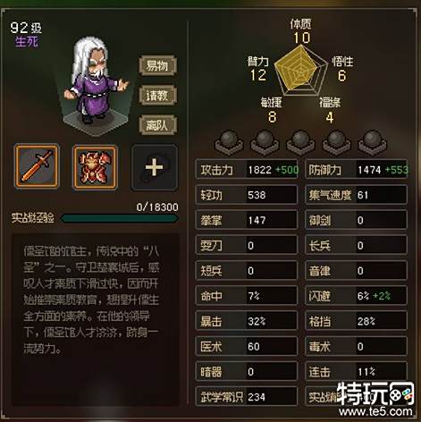 男性:蔡元常,蔡元常拥有极高的攻击力和防御力,同时也可以解除队友的中毒状态。邋遢张,邋遢张是大侠立志传游戏中的一个角色,他以懒散邋遢但神龙见首不见尾的形象为人所知。九凤的挫锐属性可以让角色在战斗中增加最终伤害,有利于我们快速获得战斗的胜利。