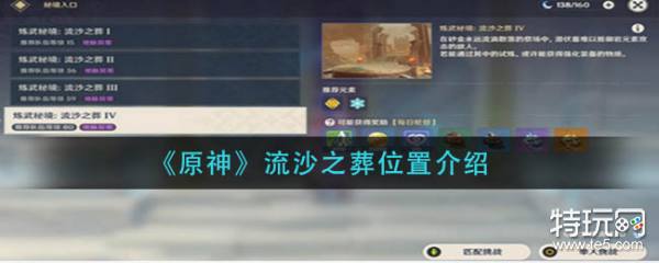 《原神》当中流沙之葬是一个秘境副本,挑战秘境可以获得许多角色培养材料。很多玩家还不清楚流沙之葬的位置,下面就让小编给大家带来原神流沙之葬位置介绍,感兴趣的玩家一起来看看吧。