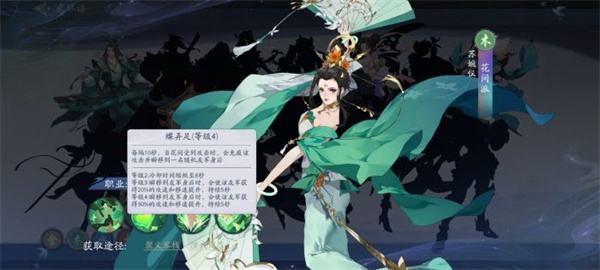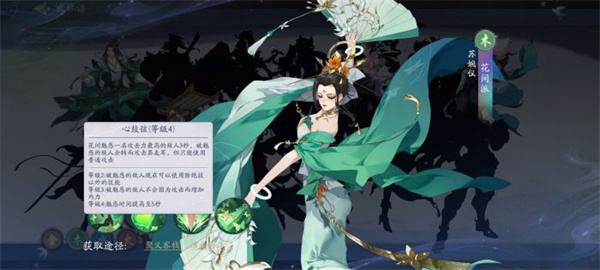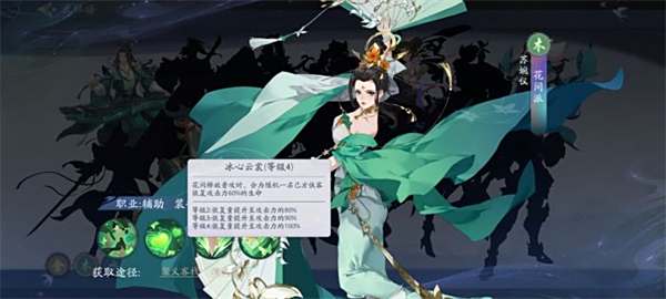 技能效果:花间鼓舞所有己方侠客,使其攻击力、防御力、攻速、移速全部提升30%,持续5秒(与昆仑的瑶弦天籁不叠加)