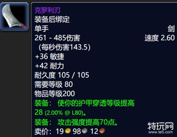60级近战大菜刀克罗之刃的升级版,2.6的攻速和破甲属性销路更广,冰DK也能用。