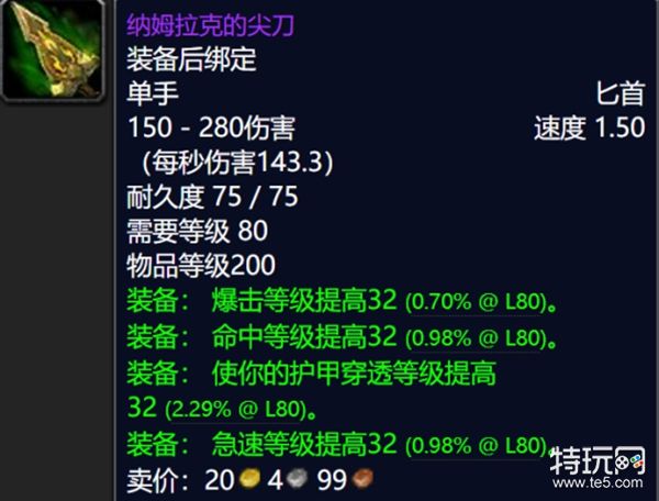 图标和模型和祖尔金掉落的扭曲预言之刃一样,适合战斗贼(副手)、邪DK(双持)和猎人使用,31点命中属性是它最大的优势。
