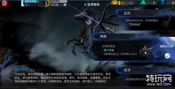 获得收藏品“海潮的气息”后可能随机遭遇事件“骑士仍在”,在事件中选择“反抗”可消耗2生命,获得藏品“荒诞命运”(源石锭+10钥匙+1);