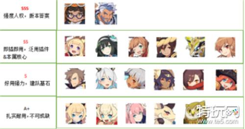 T3强度:花火、亚尔克、源樱、莉洁儿、翠善、夏丝丝、稻穗、露娜露、米格里、宗士郎