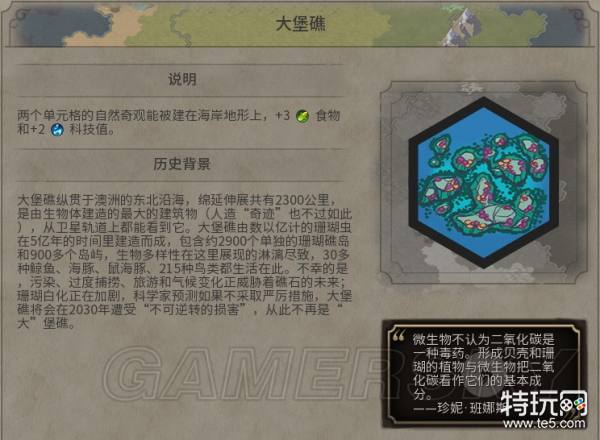 自然奇观会为所在格和周围地格提供大量的产出,为所在格以及相邻地格提供额外的2吸引力(Appeal),并为圣地提供大量加成。