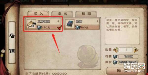 1、游戏中文房四宝有3个地方可以购买,南阳渡画摊的落魄书生(25,17)每天刷新3个,成都书坊的书生(12,5)每天刷新3个,洛阳文成书肆的薛文成(17,28)每天刷新5个;