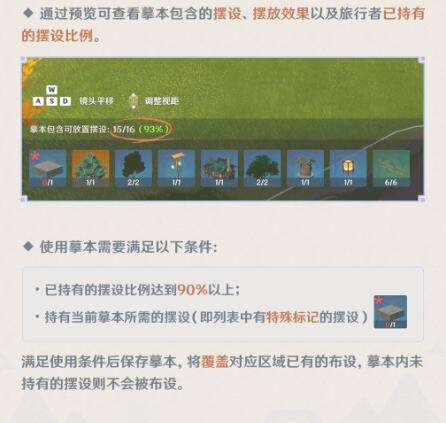 4、满足使用条件后保存摹本,将覆盖对应区域已有的布设,摹本内未持有的摆设不会被布设