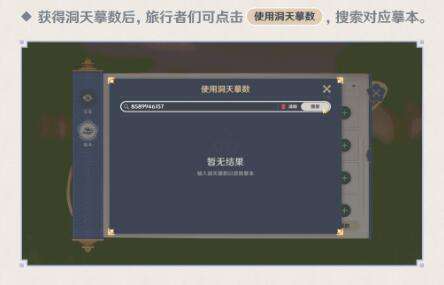 1、获得洞天摹数后,旅行者点击使用洞天摹数,搜索对应摹本