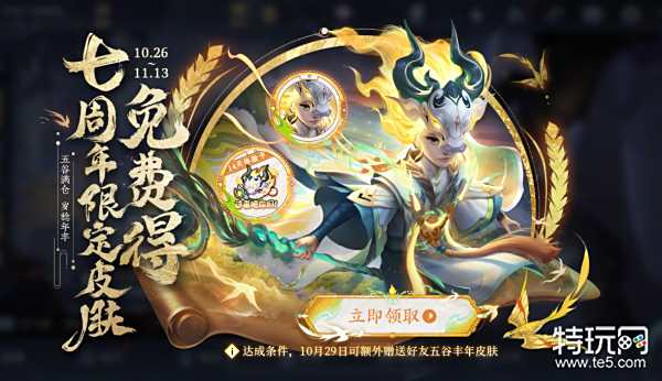 以上便是小编为大家带来的王者荣耀鬼谷子五谷丰年皮肤兑换码获取方法了,感兴趣的小伙伴可以去体验一下。更多消息和内容关注特玩网,之后会持续给大家带来更多全新的内容。