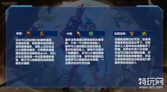 以上就是关于英雄联盟手游蒙多打野玩法解析的全部内容了,希望对大家有所帮助,众多最新的游戏资讯攻略,尽在特玩。