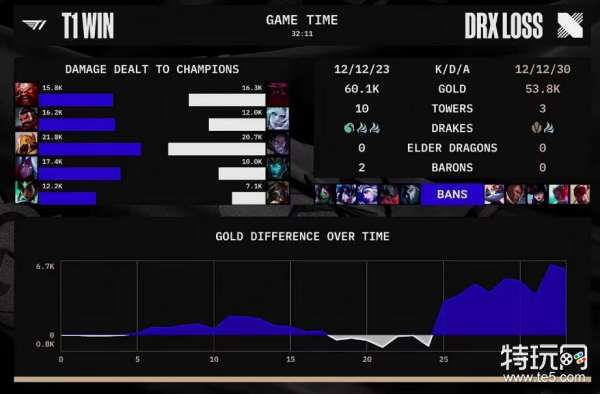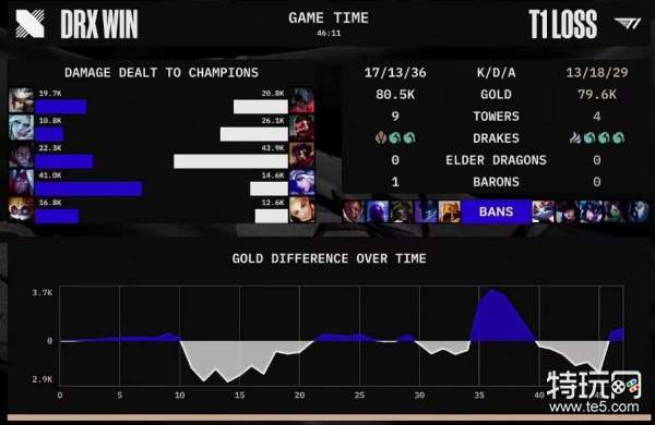 中期T1凭借野区团战击杀DRX多人,成功滚起雪球。