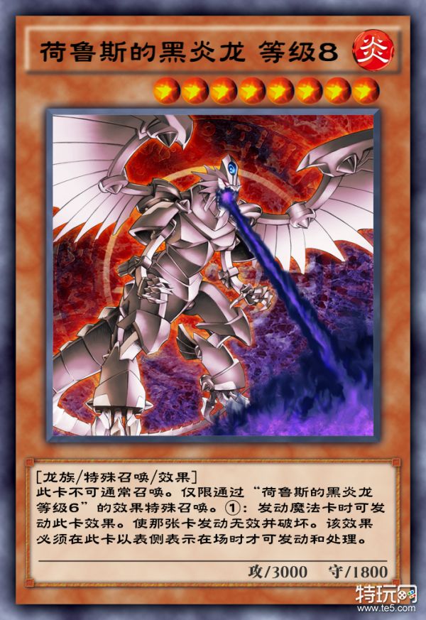 此卡战斗破坏怪兽的回合结束阶段可将此卡送入墓地,从手牌·卡组特殊召唤1只「荷鲁斯的黑炎龙 等级8」。