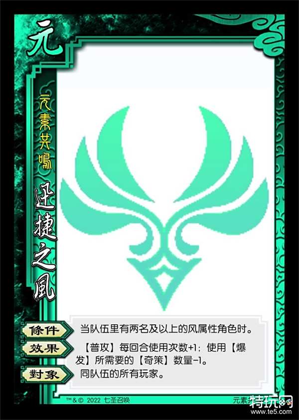 团队中有两个以上的风系角色;每一轮的【普通攻击】+1,【奇策】+1。