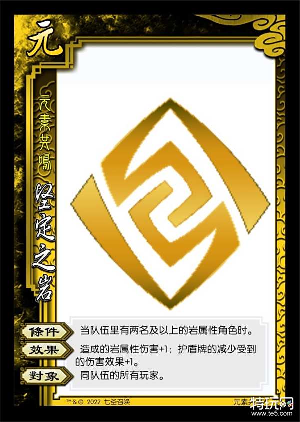 在团队中拥有两个或更多岩石属性的角色时;+1的岩石伤害,+1的防御,+1的防御。