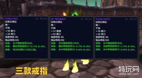 BOSS会掉落3款200等级的戒指,分别对应治疗职业,敏捷系DPS以及法系DPS。虽然这些戒指的等级只有200级,在P1团本开放之后已经没有什么优势了,但是这些戒指的属性都是非常优秀的。