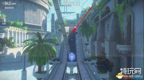 之后穿过大O形跑道,使用横杆的时候,荡到空中拿到第三个红星环。