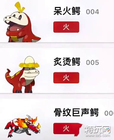 1、进化形态:呆火鳄--炙烫鳄--骨纹巨声鳄