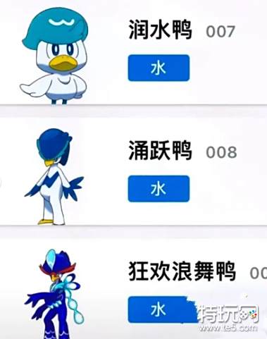 1、进化形态:润水鸭--踊跃鸭--狂欢浪舞鸭