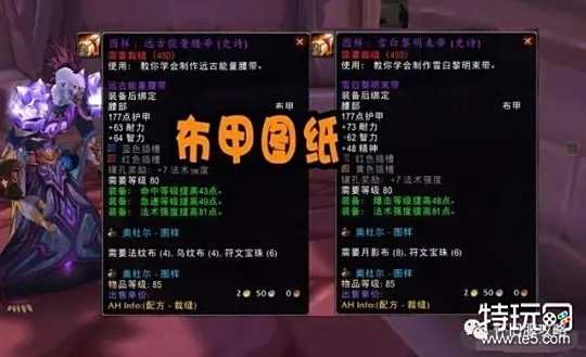 布甲图纸虽然四个装备图纸看似都很优秀,但最终还是挑选两个适用面更广的,分别为远古能量腰带和雪白黎明束带,远古能量腰带提供命中、急速属性,对于痛苦术、奥法都是不错的选择,而雪白黎明束带则提供高精神和高暴击的属性,非常契合戒律牧和火法。