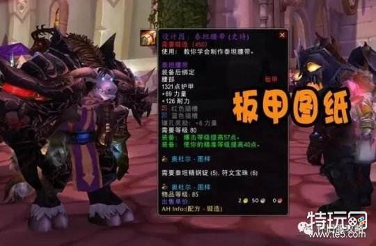 板甲图纸里泰坦腰带的属性就非常优秀,白字69力量和126耐力,绿字提供57暴击以及40点精准,并且额外带两个宝石插槽,如果再加上永恒腰带扣就是三个宝石插槽的腰带,可想而知这个腰带有多么夸张,除了人数众多的冰DK和邪DK,信仰狂暴战的玩家也会值得拥有。