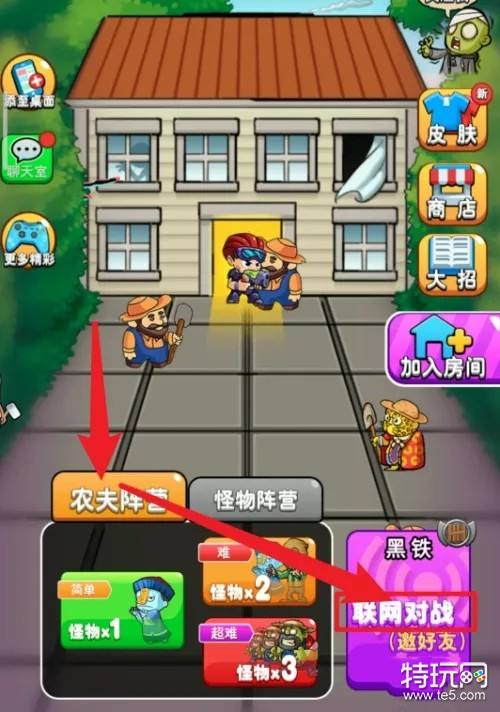 然后,在主界面选择农夫阵营并点击进入联网对战。