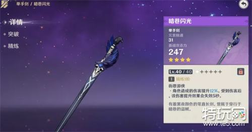 3、暗巷闪光:这把武器既能增加万叶的基础攻击力,还可以提高万叶的元素精通打元素反应时伤害更高。