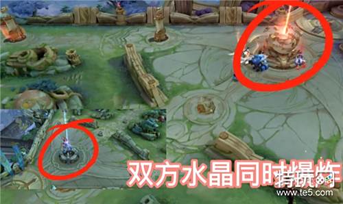 还有就是两边同时推掉水晶的情况也是有的,如下图所示,红蓝双方的水晶是同时爆炸的。