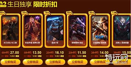 4、生日独享六款皮肤限时折扣;