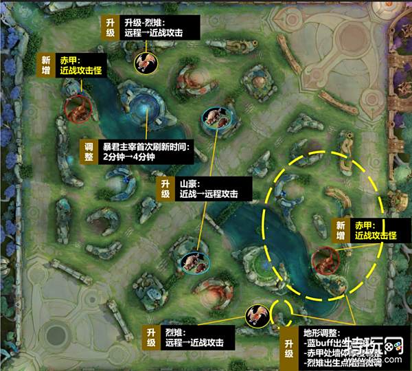 山豪(原熊怪点):伴随这次野区资源的丰富,我们把原本的熊怪点做了升级,让法术伤害英雄在野区也可以有更容易获取的资源。熊怪升级为山豪