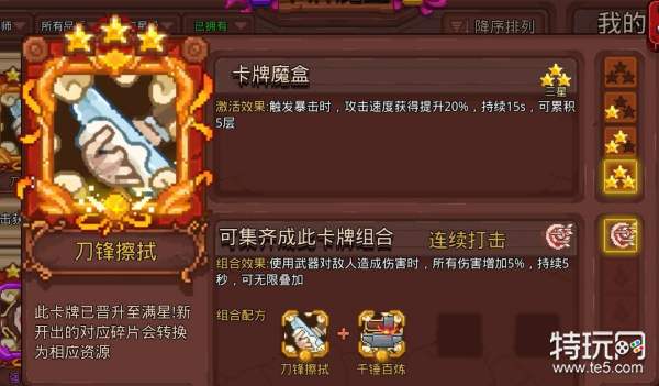 必备的卡牌是:刀锋,千锤,假人,沙袋,护腕,鹰眼。