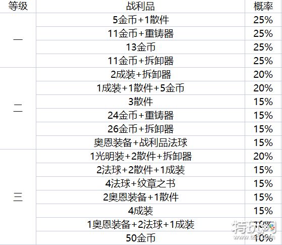 这里给大家提供各等级战利品掉落概率的图,需要可以自行保存。
